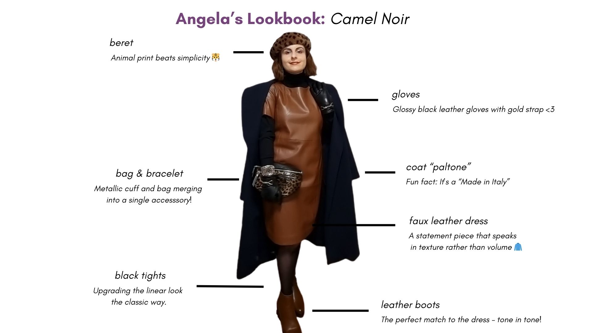 Overall, the ensemble communicates contemporary urban elegance. It is a constructed statement look that merges modern minimalism with textural richness and injects a subtle Parisian attitude.